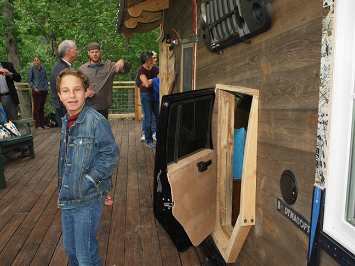 Nearly 15 years after open heart surgery, a high school student helps design a special treetop retreat for his fellow campers — with a camera crew in tow.