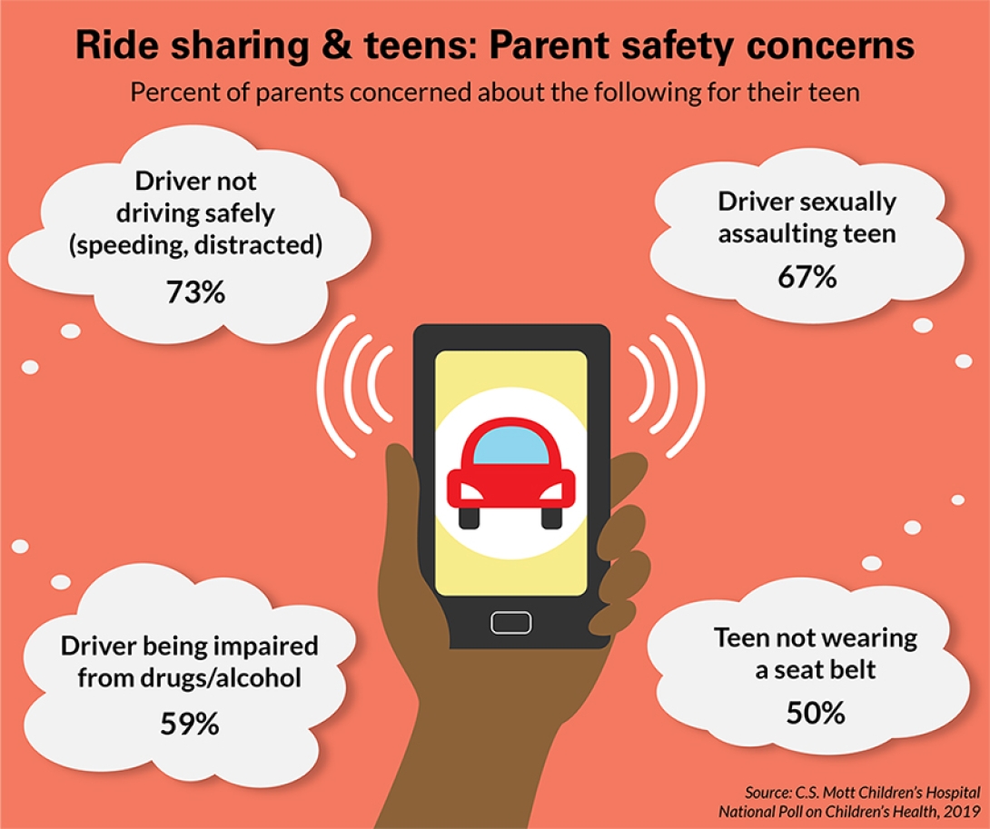 Likewise, the Mott poll found that two-thirds of parents worry that a driver might sexually assault their teen. And 3 in 4 parents were concerned the driver would not be driving safely — by speeding or checking their phone, among other things.