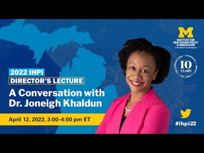 The talk, hosted by the U-M Institute for Healthcare Policy and Innovation, served as the 2021 IHPI Director's Lecture, and was introduced by IHPI director John Z. Ayanian, M.D., M.P.P.
